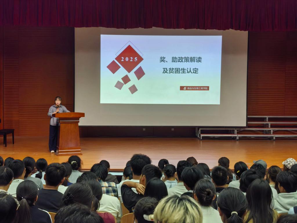 为帮助同学们全面了解国家及学校的各项奖助政策,确保同学们顺利获得有效资助,9月30日,食品与生物工程学院在一教207开展奖助政策解读及贫困生认定宣讲会,食品与生物工程学院团总支书记王晶、辅导员伯松澄及2025级新生参加本次宣讲会。