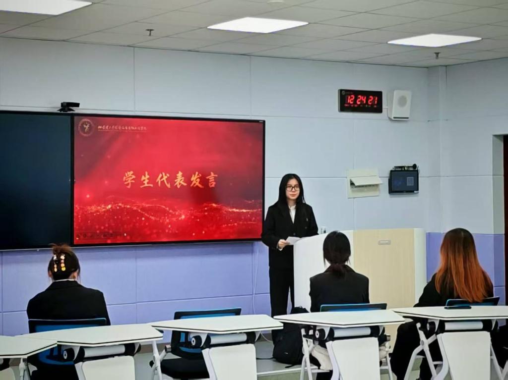 在庄严的国歌声中,大会拉开序幕。2024届学生会主席鞠欣雨、团总支学生副书记徐静、党务工作部部长李子晴分别向大会作工作汇报。三位学生干部用真挚的话语讲述了在学生工作中的成长与蜕变,坦言对这份工作的热爱是支撑自己一路前行的核心动力,并寄语新一届学生干部用实干为学院学生工作注入蓬勃新活力。