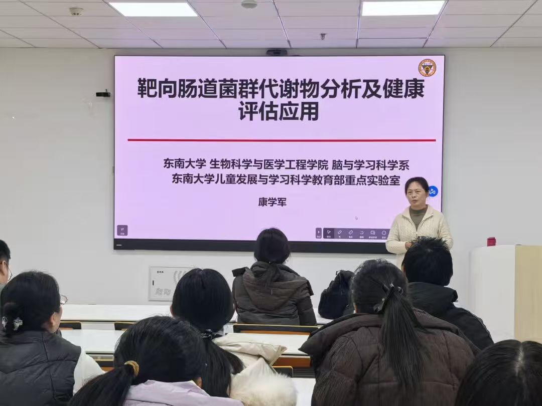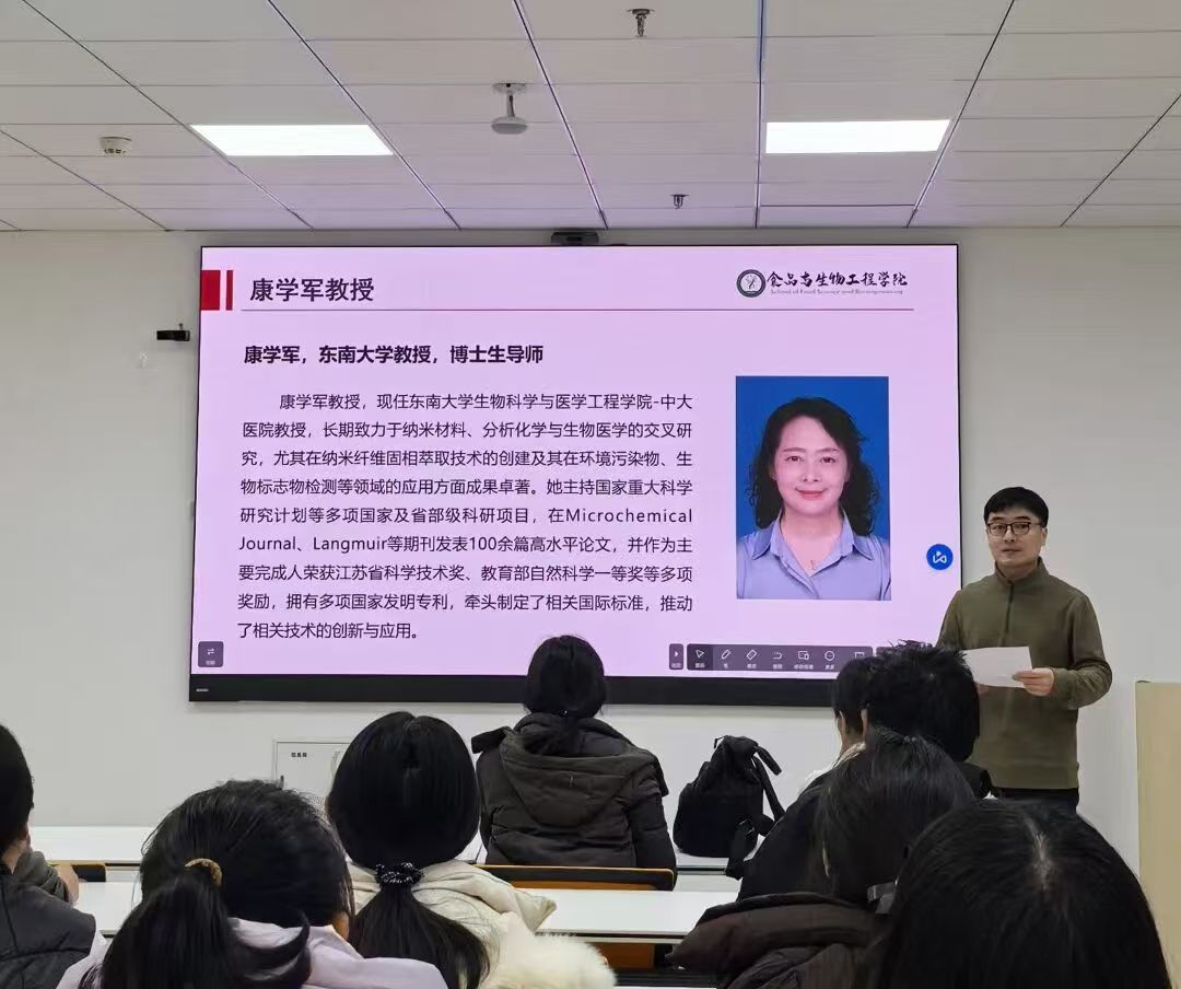 12月4日下午,食品与生物工程学院于综合楼S209学术报告厅成功举办学术报告会。食品与生物工程学院特别邀请到东南大学生物科学与医学工程学院教授、博士生导师康学军教授为我院师生作题为“靶向肠道菌群代谢物分析及健康评估应用”的精彩学术报告。报告会由食品与生物工程学院副院长王跃猛主持,学院部分教师及学生代表参加了此次活动。