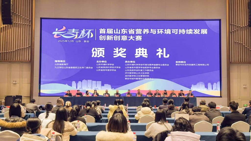 为搭建营养与环境领域产学研交流平台,探索可持续发展创新路径,激发大学生科研创新与实践应用能力,2025年12月20日,“泰山论健:营养·环境与可持续发展创新大会”暨“长青杯”首届山东省“营养与环境可持续发展”创新创意大赛颁奖仪式在泰安隆重举办,食品与生物工程学院栾依霖老师作为教师代表带领学生应邀参会领奖。