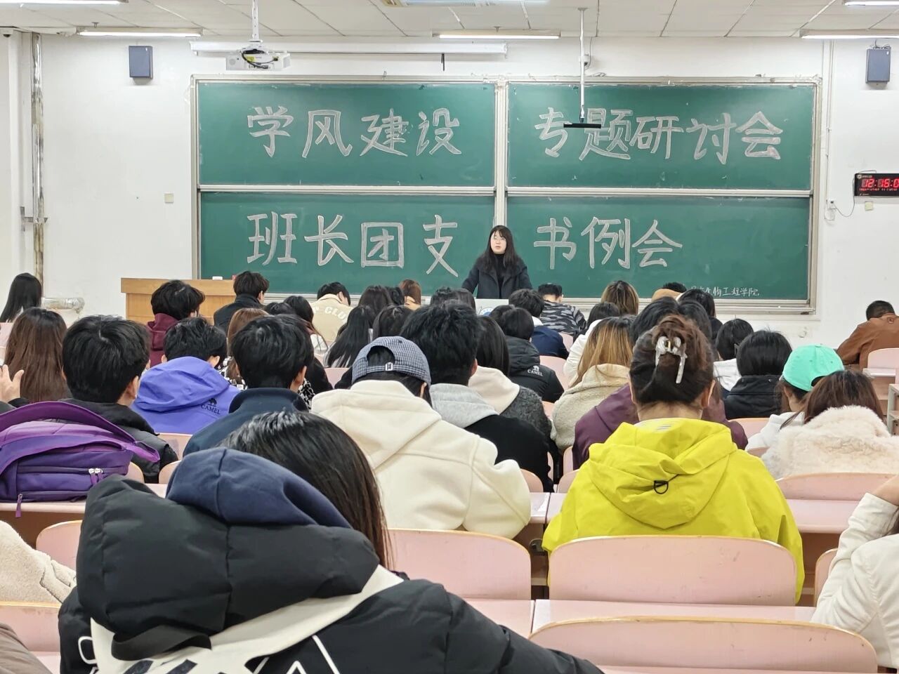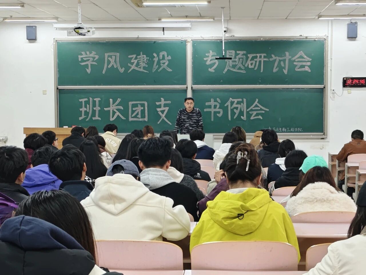 会议伊始,老师们围绕班级学风建设推进、学业管理落实等重点工作做专项部署,将课堂管理、学业帮扶、宿舍建设与学风建设深度融合,明确工作要求、压实骨干责任。在课堂学风培育上,要求各班骨干严格抓实课堂出勤督查,带头严守课堂纪律,引导班级同学端正学习态度、树立明确学习目标,培育自主学习、互助共进的良好学习习惯,着力营造勤学善思、严谨务实的班级学习氛围;在学业帮扶落实上,聚焦学业规划指导、期末备考推进、挂科预警排查等关键环节,督促各班骨干密切关注班级同学学习状态,及时收集学业困难问题、反馈学习诉求,实现学业帮扶精准化、常态化;在学风建设阵地打造上,强调宿舍是学风建设的重要载体,需以规范宿舍卫生、严守用电安全、营造文明氛围为抓手,打造整洁有序的宿舍学习生活环境,以优良宿舍风气涵养班级学风,为学风建设筑牢基础。